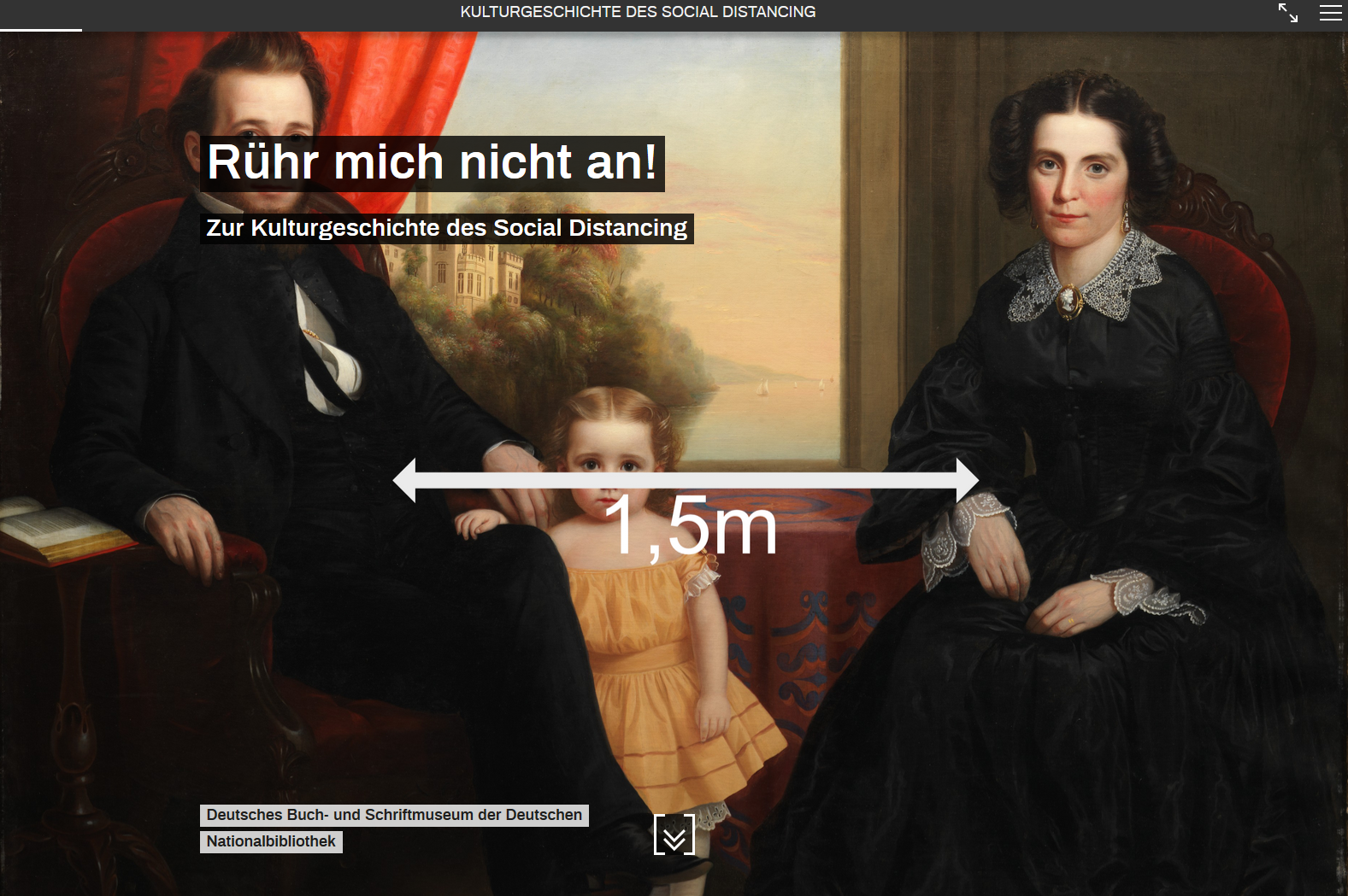 Die Ausstellung ist zu finden unter https://ausstellungen.deutsche-digitale-bibliothek.de/distanz/#s0