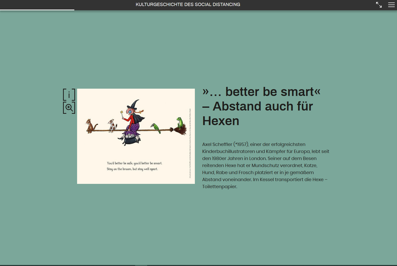 „Scrollytelling“ lautet das Zauberwort, das auch diese Ausstellung, wollen wir so weiter so bezeichnen, zum lehrreichen Genuss werden lässt. Man fährt via Maus oder Touchpad durch die Geschichte, um dann und wann ein Hintertürchen, sprich eine Bilderläuterung zu öffnen.