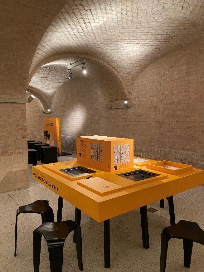 Ausstellungsübergreifend gibt es ein gratis Rätselheft, das ansprechend gestaltet ist, für das jedoch ein Stift zum Ausfüllen der Aufgaben nötig ist. Darauf wird man an der Kasse (zumindest als 23-Jährige ohne Kind) oder vor dem Einschließen seiner Gegenstände nicht hingewiesen. Ebenfalls fällt erst mit dem Rätselheft in der Hand auf, dass zur Bearbeitung teilweise der Audio-Guide von Nöten ist. Mit entsprechenden Hinweise beim Ticketkauf oder an der Garderobe könnte die Besucher:innenfreundlichkeit mit wenigen Mitteln verbessert werden. Obwohl sich die Ausstellung grundsätzlich für Familien eignet, enttäuschen der Mitmacheffekt oder die interaktive Einbeziehung, obwohl davon alle Besuchenden profitieren würden.