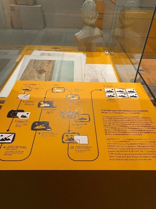 Da die Hieroglyphen als bildliche Schrift im zweiten Ausstellungsteil eine große Rolle spielen, kann den Piktogrammen auch eine inhaltliche Bedeutung zugesprochen werden. Sie könnten nicht nur verwendet worden sein, um bildlich Informationen darzustellen, sondern auch dazu dienen, die für die Erforschung der altägyptischen Kultur höchstrelevante Bildschrift nachzuempfinden. Wesentliches Thema der Provenienz wird zur NebensacheDie Ausstellung bietet eine in sich abgeschlossene Erzählung des königlich geförderten Abenteuers und dessen hoher wissenschaftlicher Bedeutung für Berlin und die ägyptologische Forschung. Dabei richtet sie den Blick nicht nur auf die Objekte der hauseigenen Sammlung, sondern auch auf deren Provenienz. Es handelte sich um Mitbringsel einer Forschungsreise. Indem die Exponate an den jeweiligen Stationen der Reise positioniert werden, eröffnet sich ein Blick auf die Umstände ihrer Beschaffung. Das ließe sich nutzen, um die in den letzten Jahren präsente Frage der Herkunft von Objekten in deutschen bzw. europäischen Sammlungen zu beantworten. Dies geschieht jedoch nur indirekt, anhand des Aufmachers der abenteuerlichen Forschungsreise, weswegen museologisch relevante Diskursfragen nach Rechtmäßigkeit und Besitzanspruch eher oberflächlich abgehandelt, statt zur Diskussion gestellt zu werden. Letzteres ist nicht das Ziel der Ausstellung, eventuelle Restitutionsforderungen finden keine Erwähnung. Stattdessen wird häufiger erwähnt, dass es sich bei den Ausfuhren um Geschenke des ägyptischen Machthabers Mehmed Ali Pascha an Lepsius bzw. den preußischen König handelte. Der Besitzwechsels der Objekte wird damit formal legitimiert. Lediglich Lepsius archäologisches Vorgehen, bei dem er intakte Architektur abbaute und nach Berlin brachte, wird am Ende der Ausstellung kritisiert und als heutzutage illegal klassifiziert. Von Nordafrika ins Museum Beide Ausstellungsteile sind logisch voneinander getrennt. Der erste behandelt zunächst die eigentliche Reise bis zur Rückkehr nach Europa. Nach der Ankunft in Deutschland folgt die Übernahme der Sammlungsstücke in das fast fertiggestellte Museumsgebäude. Die schiere Menge und wissenschaftliche Bedeutung der Funde werden durch die Titulierung als „Erfolge der Expedition“ hervorgehoben. Damit seien Grundlagen der ägyptischen Sammlung gelegt worden. Der zweite, deutlich kleinere Ausstellungsteil, widmet sich stärker den wissenschaftlichen Methoden zur Entschlüsselung der Objekte und zur Gewinnung von Wissen aus ihnen. Dabei wird auch die Brücke in die Gegenwart und aktuelle Museumsarbeit mit den Objekten geschlagen und ihre Relevanz für die Forschung erneut betont. Wesentliche Elemente der altägyptischen Kultur werden hier prägnant und für unterschiedliche Zielgruppen verständlich erklärt, z.B. der Nutzen der Opferkammern oder die Ikonographie einiger großdimensionaler Funde. Besonders die Hieroglyphen erhalten große Aufmerksamkeit, da diese Schrift weiterhin Rätsel aufwirft und das Publikum zu faszinieren verspricht. Ihre Besonderheiten werden in den Blick genommen und erklärt. Dies lässt sich zwar direkt an den Objekten nachvollziehen, eine weitere Aktivierung der Besuchenden wünscht man sich jedoch trotzdem und mit Ausnahme einer Aufgabe in dem kindlichen Rätselheft vergebens.Das Druckverfahren der Lithografie wird schrittweise, verständlich und anhand von Bildern erklärt. So wird auch hier die wissenschaftliche Erkenntnis, die durch Objekte gewonnen werden kann, stets mit den Exponaten verbunden.