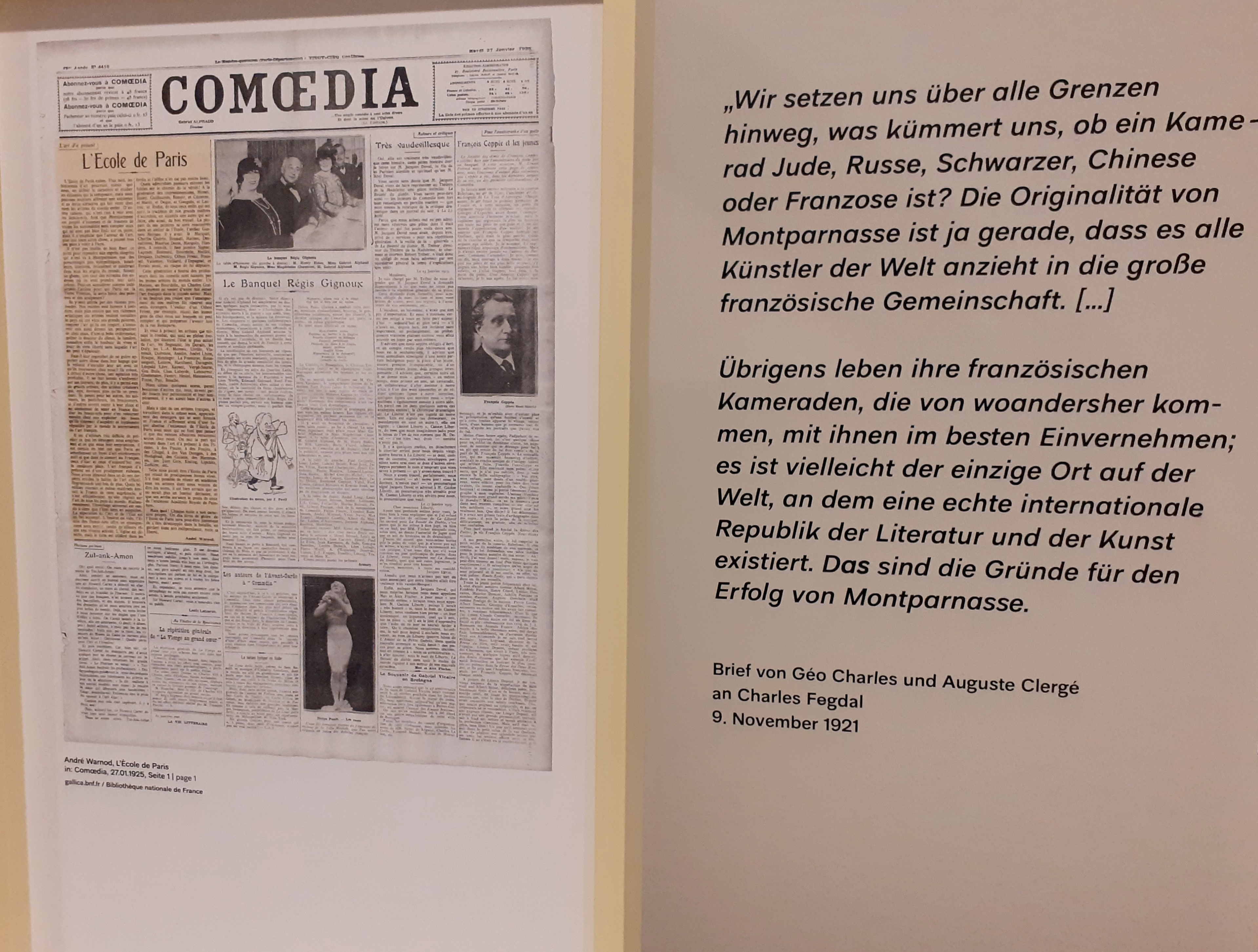 Mit der aktuellen Sonderausstellung soll gleich zweierlei Denkmal gesetzt werden: Einmal mehr der Weltkunststadt Paris, sowie erstmals den jüdischen Künstlerinnen und Künstlern der mehrheitlich migrantischen École de Paris („Schule von Paris“). Die Übernahme der 2021 im Pariser Musée d’ Art et d‘ Histoire du Judaïsme gezeigten Schau „Chagall, Modigliani, Soutine… Paris pour école, 1905-1940“ ist die erste große Würdigung dieser Form in Deutschland. Ihrem Anspruch nach will sie zeigen, „wie migrantische, oft marginalisierte Positionen als Teil der Pariser Avantgarde das heutige Verständnis der Kunst der westlichen Moderne prägten.“