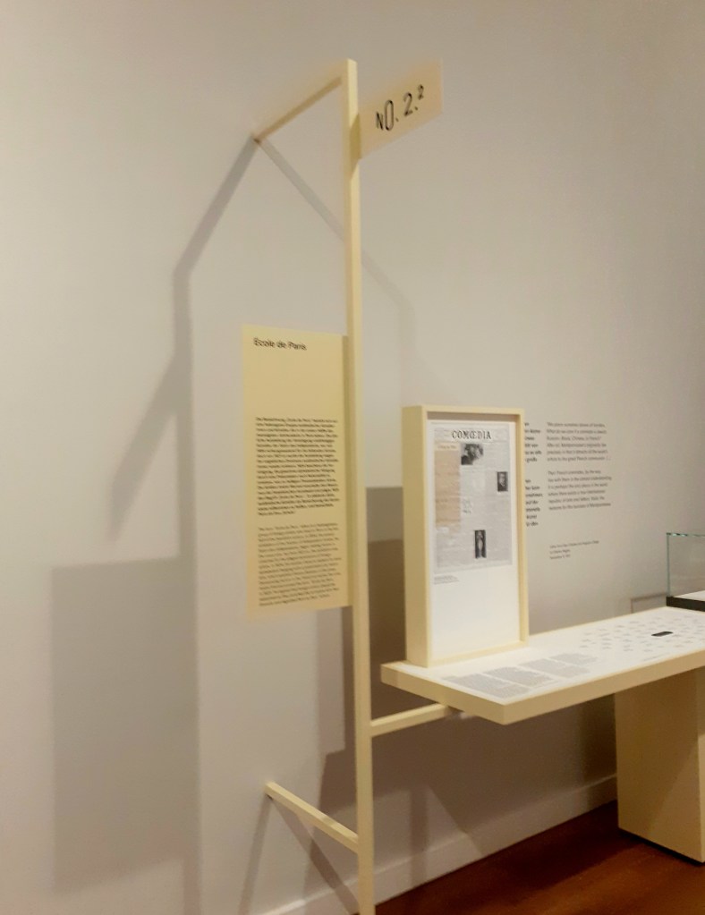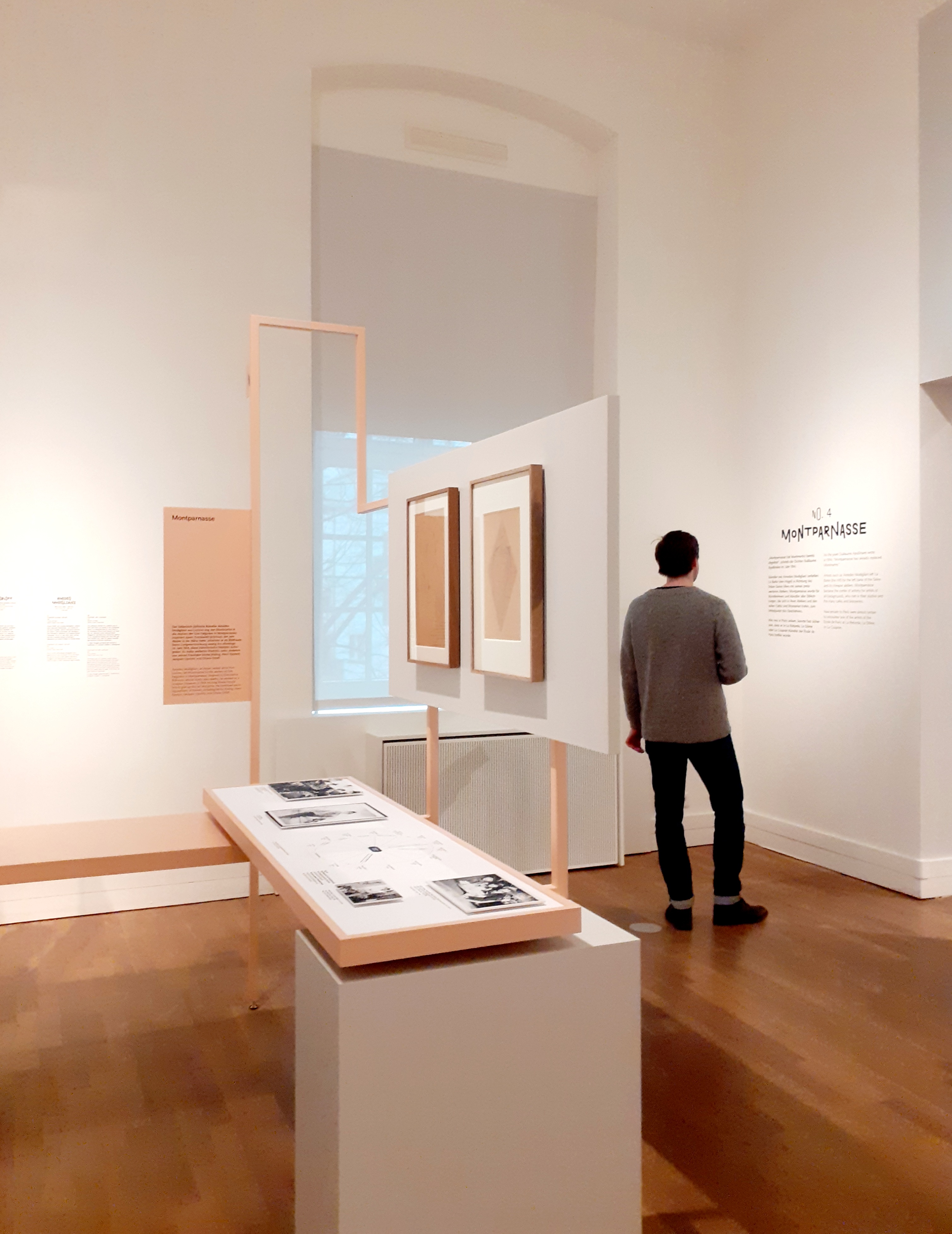Mit der gegebenen Raumordnung, in der sie das übernommene Konzept unterzubringen hatte, dürfte die Kuratorin Shelley Harten vielleicht nicht recht glücklich gewesen sein. Zwar macht die vorgenommene Einteilung Sinn, wonach die Erzählung vom ersten Hauptsaal ausgehend in den Räumen der rechten Seite der Zeit bis zum Ersten Weltkrieg gilt, während linksseitig, beginnend mit den années folles, die Zeit bis 1940 abgedeckt wird. Im metaphorischen Sinne verläuft so ein Graben durch den ersten Saal. Aufgrund dieser Einteilung wird jedoch bedauerlicherweise der Erste Weltkrieg in einer Korridorsituation räumlich wie sprichwörtlich an den Rand gedrängt, was seiner kulturhistorischen Bedeutung für diese lost generation kaum entspricht.