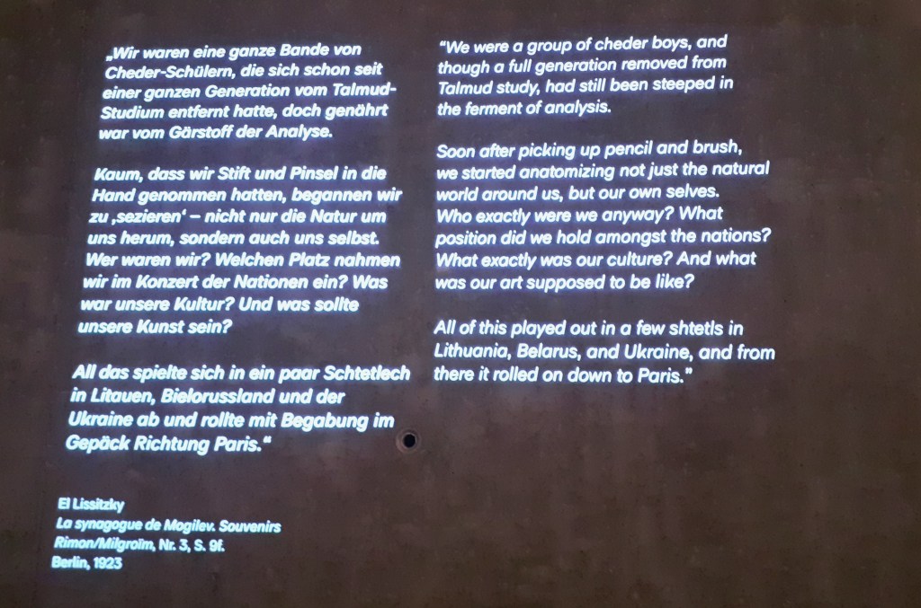 Die jüdischen Künstler:innen der École waren die letzten eines über Jahrhunderte gewachsenen europäischen Judentums, das in der Shoa vernichtet wurde. An vielen Stellen wird zwar das Paris der Cabarets und Bohemiens heraufbeschworen, was teilweise Klischees bedient ohne der prekären Existenz der Exilkünstler:innen wirklich gerecht zu werden. Anstatt dieser Wiederholungen hätte ich mir die lebhafte Wiedererstehung einer anderen verlorenen Welt gewünscht: Die des aschkenasischen Stetls und der Yeshiva. Diese heute unbekannte Welt wird an keiner Stelle der Ausstellung präsent und wird nur mit Stichpunktnennungen bedacht.