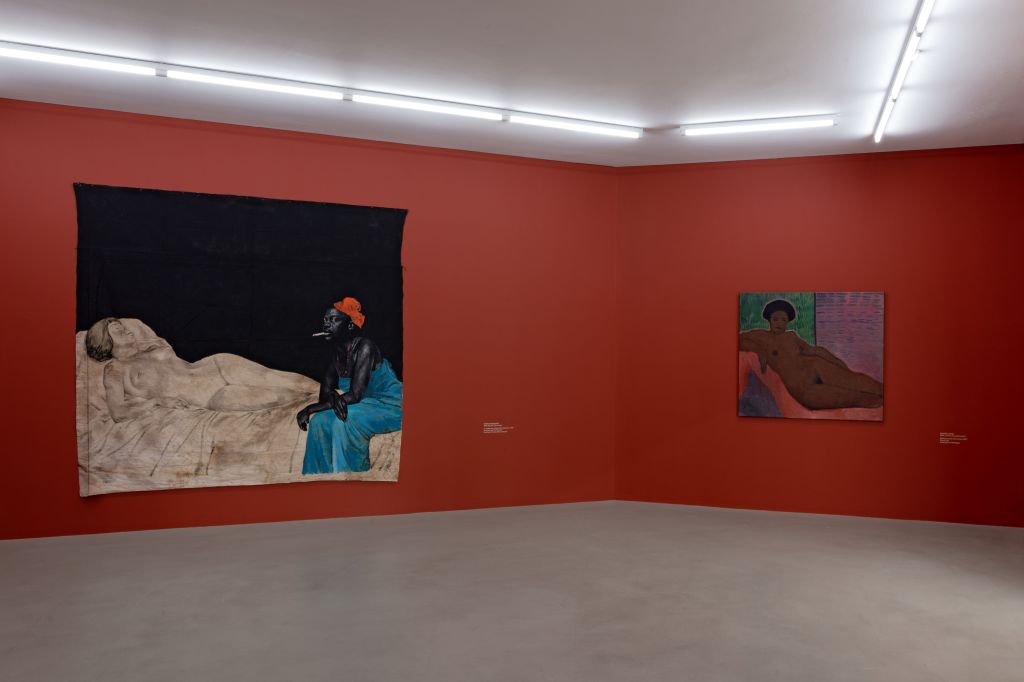 Eine Etage höher werden uns die Themen „Sinnlichkeit“ und „Spiritualität“ präsentiert. Der Jahrhunderte langen Fetischisierung von Schwarzen Körpern werden hier intime Einblicke und selbstbewusste Darstellungen entgegengesetzt, „wie sie der westliche Bilderkanon kaum je zugelassen hat.“ In der Beschäftigung mit an europäischer Kunstgeschichte angelehnte Darstellungsmodi wie das Motiv der liegenden Nackten, besonders in der direkten Auseinandersetzung mit bestehenden Werken, u.a. bei Roméo Mivekannin (*1986, Elfenbeinküste), wird die Umkehr offensichtlich.