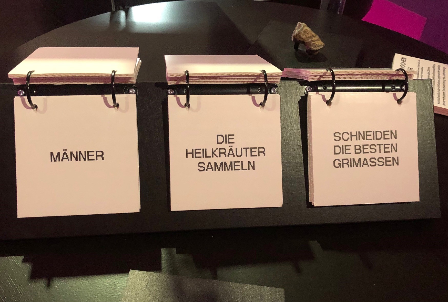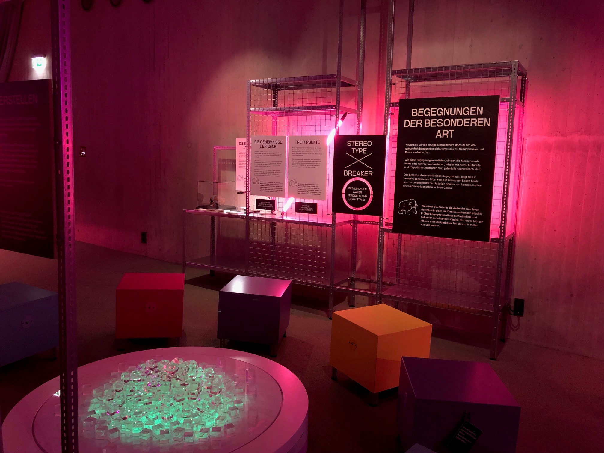 Trotz vieler positiver Aspekte gibt es aus meiner Sicht einige Punkte, die die Ausstellung noch weiter verbessern könnten. Ein zentraler Kritikpunkt ist der teilweise verstärkte Dualismus der Geschlechter, der in der Ausstellung mitschwingt. Obwohl viele Fragen aufgeworfen und selten definitive Aussagen gemacht werden, könnte die konsequente Unterteilung in „männlich“ und „weiblich“ die Diskussion über die Geschlechterkonzeption der Neanderthalerinnen vereinfachen. Hatten sie überhaupt eine klare Vorstellung von Geschlecht im modernen Sinne? Hier wäre mehr Raum für eine differenziertere Auseinandersetzung mit den sozialen und biologischen Rollen der Neanderthalerinnen möglich. Auch die Wahl einer eher stereotypen pinken Farbgestaltung könnte als problematisch angesehen werden, da sie die veralteten Geschlechterstereotype, die eigentlich hinterfragt werden sollen, eher verstärkt als aufbricht.