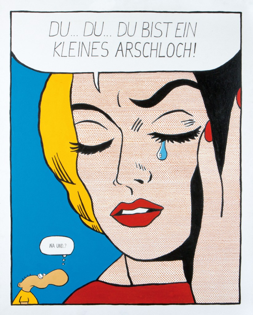 Schon vor dem Betreten des Museums erhascht man einen vielversprechenden Blick auf Moers Karikatur des berühmten Bildes von Roy Lichtenstein. Ein treffender Vorgeschmack für die restliche Ausstellung! Das Caricatura Museum ist kein großes Ausstellungshaus, doch die Präsentation nutzt den vorhandenen Raum geschickt. Im Zentrum stehen Originalzeichnungen, Skizzen und Comics von Moers, die seine künstlerische Entwicklung und seine Bandbreite sichtbar machen. Wer nur seine „13 ½ Leben des Käpt’n Blaubär“ kennt, wird überrascht sein, wie radikal und provokant seine frühen Comics in der TITANIC waren. Figuren wie das Kleine Arschloch oder Adolf, die Nazi-Sau sind politisch unkorrekt wie eh und je und beweisen, dass Moers nie vor Tabubrüchen zurückschreckte. Gleichzeitig nimmt die Ausstellung seine fantastische Seite ernst: Zamonien mit seinen skurrilen Kreaturen und dichten Erzählwelten ist ebenso vertreten.