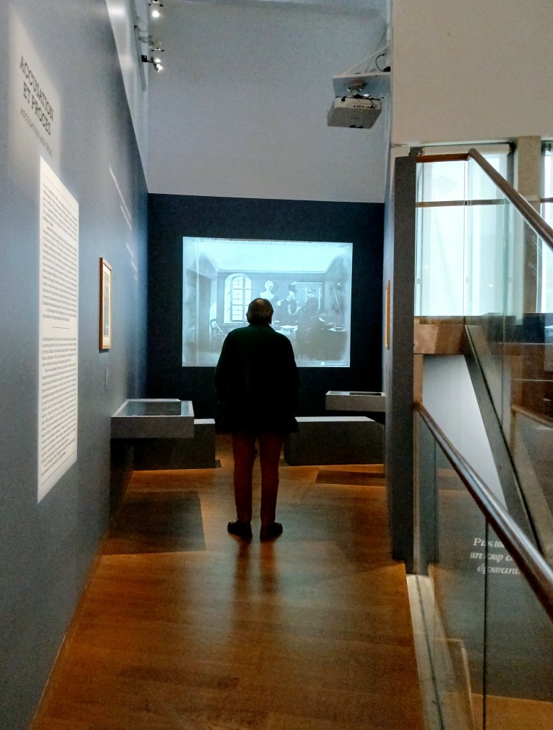 Das zeigt sich insbesondere in der kleinen Sektion zu seinen Jahren im höllischen Straflager in Übersee, passend in Meeresblau hinterlegt und mit der Projektion von Wellenbewegungen. Das verleiht der Sektion ausgerechnet jene friedliche Atmosphäre, die er keinesfalls erlebte. Sein schmales Tagebuch, das Alfred Dreyfus zwischen 1895 und 1896 führte, wird aufgeklappt in einer Vitrine neben seinen Cahiers de travail d‘ Île du Diable präsentiert. Auf diese Art erfahren wir jedoch zu wenig, was der Gepeinigte selbst festzuhalten wusste. Hier hätte schon ein nebenstehendes Transkript geholfen. Insgesamt wünschte ich mir endlich eine innovativere Präsentationsform von Büchern, die mit den medialen Mitteln von heute möglich ist.