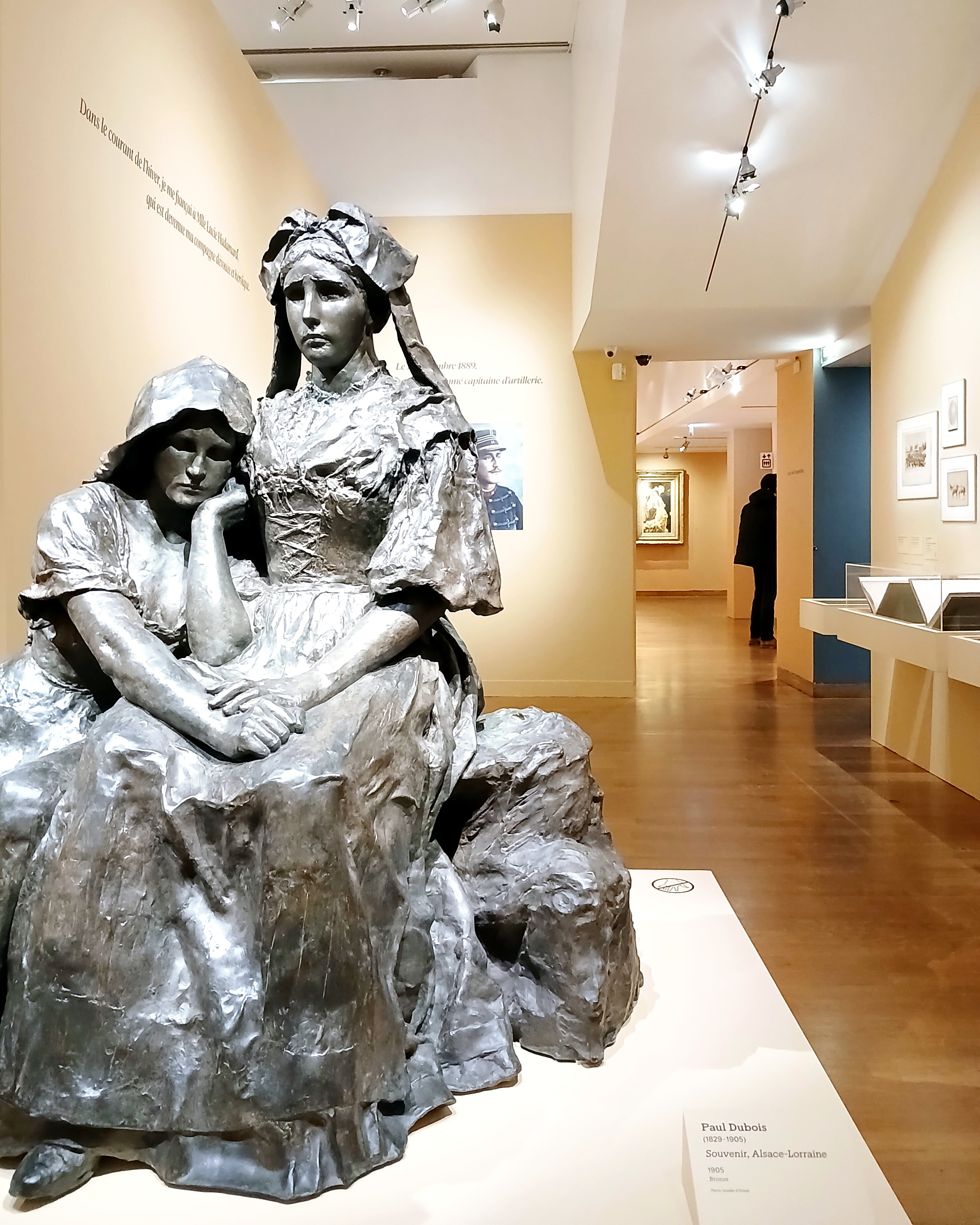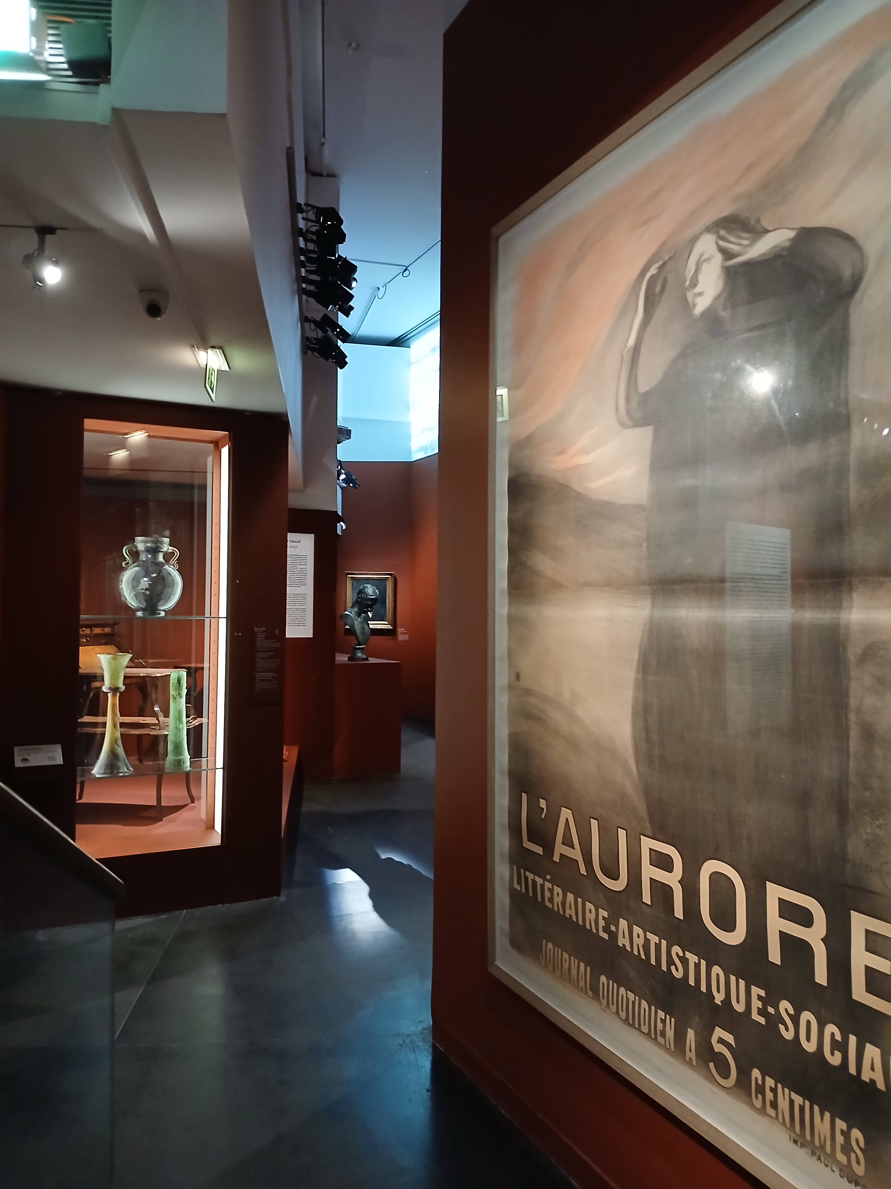 Variierende Wandfarben kennzeichnen die verschiedenen Abschnitte und werden durch Raumtexte eingeleitet, die direkt mit der Affäre in Verbindung stehen. Zwischendurch wird auf großzügigem Raum durch zwei „Einschübe“ ein Bild von der widersprüchlichen Zeit vermittelt, in der Frankreich einerseits Hort für Europas Juden war, das ihnen seit 1791 die Bürgerrechte zuerkannte. Anderseits wird die Dritte Republik als instabil gezeichnet, die drohte infolge einer Reihe von anarchistischen Anschläge ins Chaos zu stürzen und das Aufkommen von Nationalismus, Populismus, Chauvinismus und Antisemitismus sah. Eine eher selten gezeichnete Seite der sogenannten „Belle Époque“, die über Gemälde, Stiche, Plakate und Zeitungen und Ähnliches anschaulich gemacht wird.