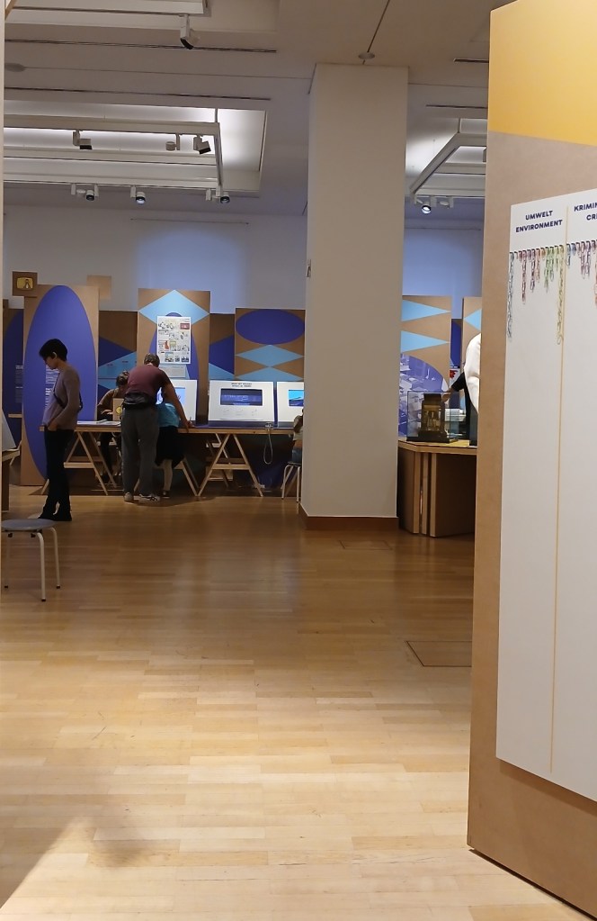 Die Strukturierung der Räume orientiert sich überhaupt deutlich an der menschlichen Aufmerksamkeitsspanne zum Verarbeiten von Informationen. Auf den gelben Raum folgt mit dem roten daher einer, der vor allem mit historischen Objekten das Sehen verstärkt bedient und daher die benötigte reflexive Erholung gewährleistet. Gegen Ende der Ausstellung nehmen die zu verarbeitenden Informationen weitestgehend ab und wird das Mitmachen intensiviert.