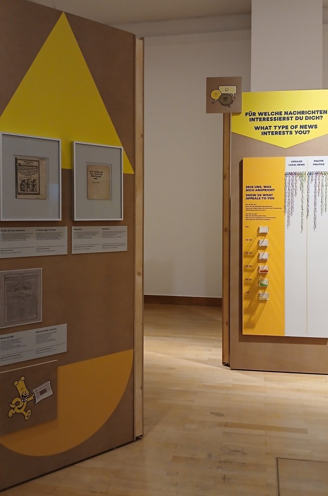 Hat man jedoch einmal seine FOMO überwunden, bewegt man sich ungezwungen zwischen den Abschnitten hindurch. Stationen, die geschichtliches Wissen, Fakten und Risiken des modernen Medienverhaltens vermitteln, wechseln sich ab mit solchen, an denen man seine Meinung bekunden oder Fragen beantworten kann. Das entzerrt die dichte, informationsreiche Erzählung. Dass das Wissen häppchenweise serviert werden, ist für all jene von Vorteil, die von einem Zuviel schnell davon schrecken.