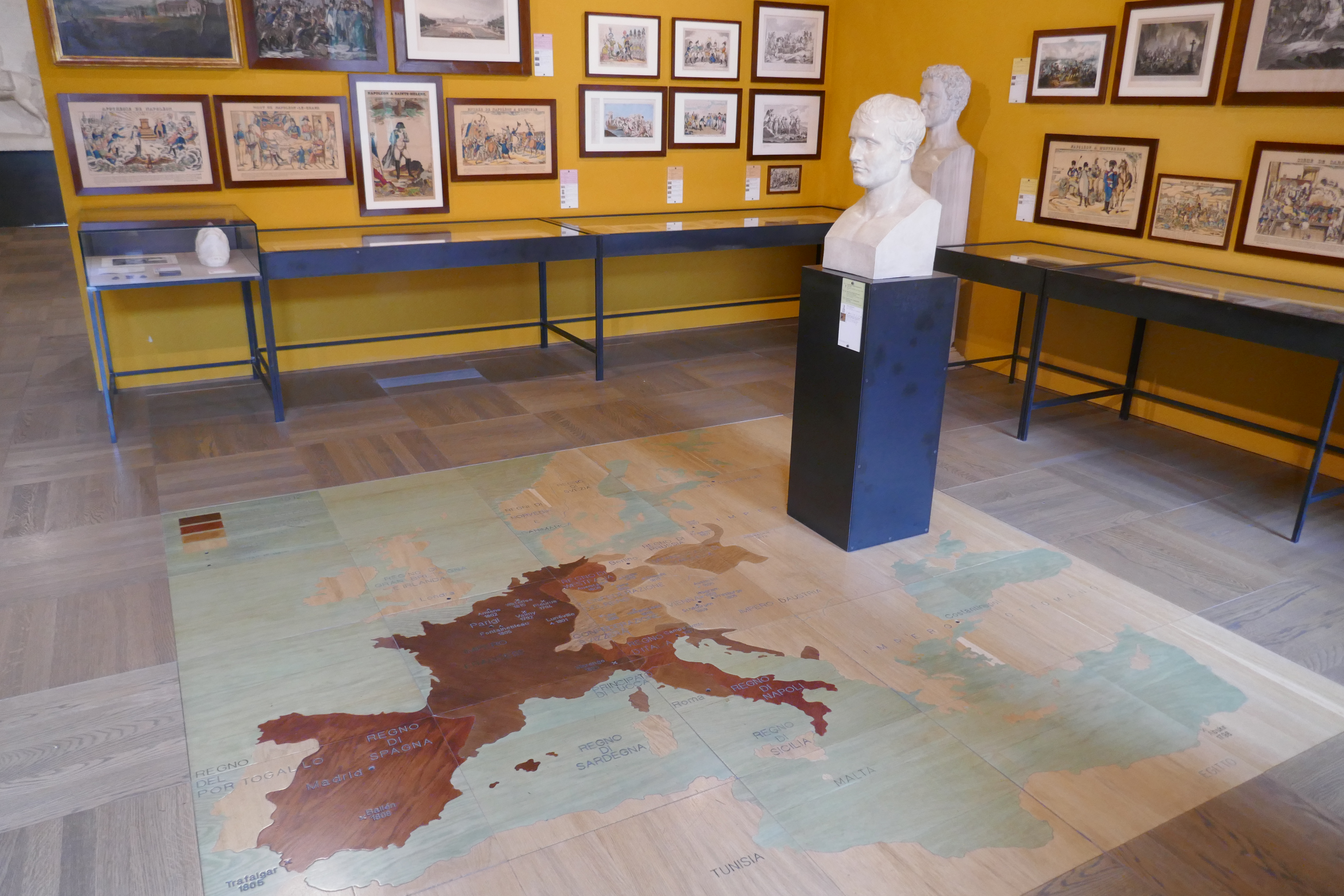 Die Wandfarbe der einzelnen Säle hat dabei symbolische Bedeutung: So steht etwa das Rot des fünften Raums, der die französische Besatzung Italiens und das revolutionäre Triennium 1796–99 behandelt, für das während der Revolution verflossene Blut, während der siebte, Napoleon gewidmete Saal sich in einem majestätischen Gelb präsentiert. Didaktisch ansprechend gestaltet ist die große Karte auf dem Boden desselben Raums, das die napoleonische Herrschaft 1812 zum Zeitpunkt seiner größten Ausdehnung zeigt und sämtliche wichtige Schlachten verzeichnet.