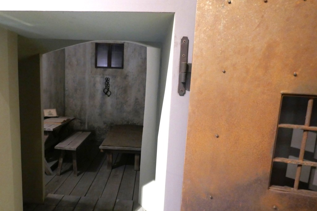 Einige Ausstellungsstücke hinterlassen einen besonderen Eindruck: So ist im vierten Raum die Rekonstruktion eines gewaltigen jakobinischen Freiheitsbaums mit einer phrygischen Mütze aufgestellt (s. Abb. 4). Der neunte Saal bietet eine inszenierte Gefängniszelle mit dem Original-Lesepult und den Handschellen des Schriftstellers Silvio Pellico, der von 1820–30 in der Festung Spielberg in Brünn inhaftiert war (s. Abb. 5). Seine autobiographische Schrift „Le mie prigioni“, mit der er die Haft aufarbeitete, entfaltete große Wirkungskraft auf die nationale Bewegung. In Raum 12 werden die originalen Notenblätter des „Canto degli Italiani“, der heutigen italienischen Nationalhymne, ausgestellt, die Goffredo Mameli 1847 niederschrieb und Michele Novaro vertonte.