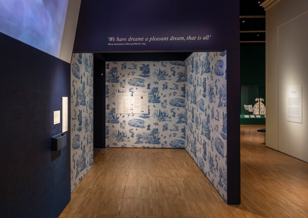 Die Ausstellung zu Leben und Stil der französischen Königin trumpft mit gestalterischer Raffinesse auf – ironischerweise bröckelt aber bei näherem Hinsehen die Fassade schon: Schrifttafeln, die bereits abbrechen oder schief sitzen; der Verfall scheint zu beginnen, wo die Aufmerksamkeit nachlässt. Ein kleines memento mori.