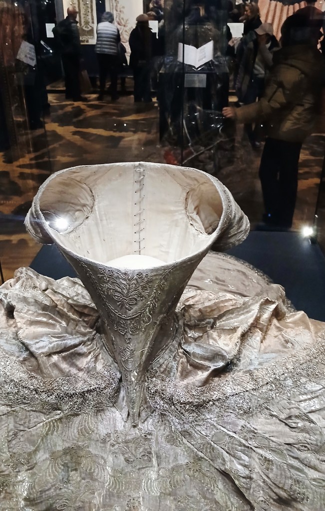 Die Ausstellung scheint mir wie eine große Verweigerung der Realität/ oder: Augenverschließen im Großbritannien des Jahres 2025, das viele Krisen schütteln, wie überall weltweit. Kultur als Eskapade und Flucht vor der Realität. Wir sollen die Sorgen ausblenden, wie einst Marie-Antoinette, die den Hunger vor den eigenen Palasttoren nicht sah. Und es scheint zu funktioniere: Am Tag meines Besuchs waren die Tickets der Ausstellung restlos verkauft und die weniger nobel und gut gekleideten Besucher:innen drinnen schienen sichtbar beeindruckt und abgelenkt.